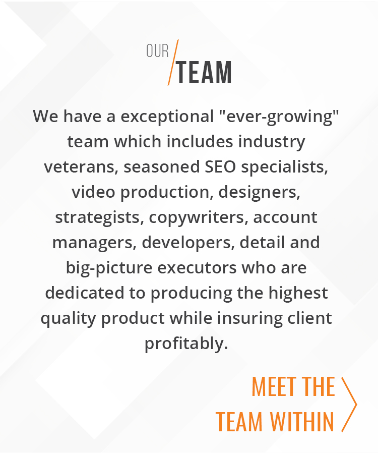 We are a creative agency located in Orlando and Tampa, and we are the most personable, flexible, “boutique-style” marketing and design agency. We utilize the newest technology and operate under tried and tested methods. We become a direct extension of your brand by learning, representing, and developing your brand as if it were our own. We help build your brand from the inside-out, but one thing always remains constant